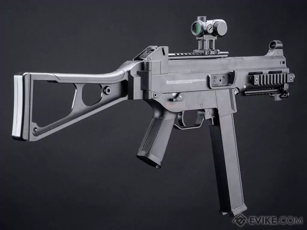 - La H&K Licenciada UMP Full Size AEG es una marcadora de alto rendimiento con un excelente valor para coleccionistas. Esta subametralladora muy compacta es perfecta para CQB, juegos de campo al aire libre y como arma de respaldo automática para francotiradores. La UMP viene con una culata plegable lateral, RIS, receptor tipo Weaver y un gearbox metálico listo para aceptar cualquier mejora o añadido.